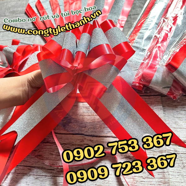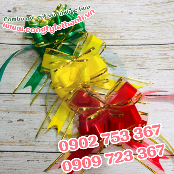 Nếu túi bóng kính có phần nền trong suốt, thì nơ rút chính là chi tiết giúp bó hoa trở nên hoàn chỉnh và bắt mắt hơn. Nơ rút có thiết kế tiện lợi, chỉ cần kéo nhẹ là tạo được form nơ gọn gàng, đều đẹp mà không cần khéo tay hay mất nhiều thời gian.