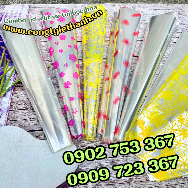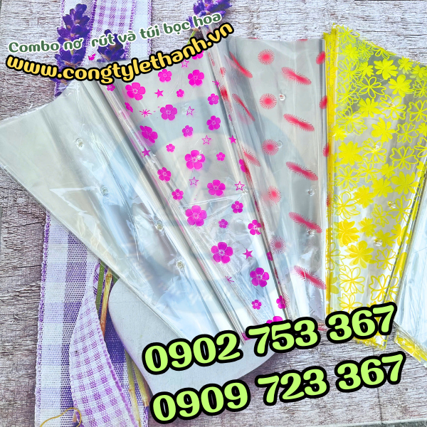 Địa chỉ cung cấp combo túi bóng kính gói hoa và nơ rút giá tốt