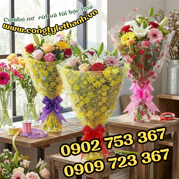 Với sự tiện lợi, tính thẩm mỹ cao và chi phí hợp lý, Công ty Lê Thanh chuyên cung cấp và phân phối combo túi bóng kính gói hoa và nơ rút giá tốt tạo ra giải pháp đóng gói hiệu quả được nhiều shop hoa tin dùng. Đây chính là lựa chọn thông minh cho những ai muốn tối ưu quy trình gói hoa, nâng cao giá trị sản phẩm và tăng hiệu quả kinh doanh lâu dài.