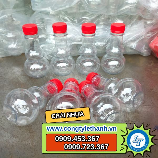 Chai nhựa hồ lô: hình dạng bắt mắt như trái hồ lô, trên nhỏ bụng to, thắt eo ở giữa, thường chai có nắp đỏ hoặc đen với kích thước 100ml, 250ml, 500ml,…